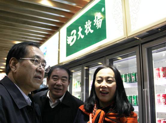 內(nèi)蒙古大牧場(chǎng)牧業(yè)(集團(tuán))有限責(zé)任公司副總裁宋寧娜為王玉明副主席一行介紹產(chǎn)品信息