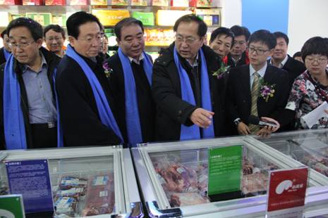 王玉明副主席和郭健廳長(zhǎng)為內(nèi)蒙古精品館上海館開(kāi)業(yè)揭幕,林永亮執(zhí)行會(huì)長(zhǎng)為內(nèi)蒙古精品館館長(zhǎng)杜勇頒發(fā)授權(quán)書(shū),其他與會(huì)人員現(xiàn)場(chǎng)見(jiàn)證了揭幕及授權(quán)儀式。隨后,王玉明領(lǐng)導(dǎo)一行進(jìn)入內(nèi)蒙古館巡視展館,王主席在巡館時(shí)親切詢問(wèn)了解入駐精品館的企業(yè)和產(chǎn)品,并提出了幾點(diǎn)要求,希望運(yùn)營(yíng)商和企業(yè)都嚴(yán)把產(chǎn)品質(zhì)量關(guān),肩負(fù)起讓內(nèi)蒙古優(yōu)質(zhì)農(nóng)畜產(chǎn)品走出去的重任,積極拓寬上海的銷售市場(chǎng),將內(nèi)蒙古綠色農(nóng)畜產(chǎn)品精品館打造成代表內(nèi)蒙古真正水平的展示和銷售平臺(tái)。王主席一行還現(xiàn)場(chǎng)觀看了自治區(qū)農(nóng)畜產(chǎn)品質(zhì)量安全追溯平臺(tái)演示。