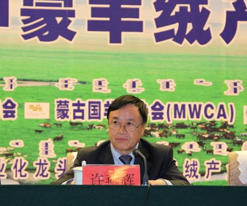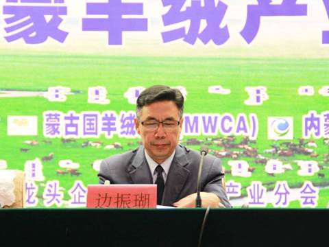 內(nèi)蒙古自治區(qū)農(nóng)牧業(yè)廳副廳長(zhǎng)許燕輝首先致辭。他在致辭中講到,中蒙兩國(guó)的羊絨產(chǎn)量占世界總產(chǎn)量的90%以上,中蒙羊絨產(chǎn)業(yè)會(huì)議在內(nèi)蒙古召開意義重大,通過多方互動(dòng)交流,就羊絨產(chǎn)情、絨價(jià)等行業(yè)共同關(guān)注情況的交流,對(duì)進(jìn)一步增強(qiáng)中蒙羊絨產(chǎn)業(yè)在全球羊絨業(yè)界的權(quán)重,凸顯內(nèi)蒙古自治區(qū)在全球羊絨行業(yè)的影響和作為全球最大羊絨主產(chǎn)區(qū)和加工區(qū)的地位意義重大,對(duì)內(nèi)蒙古羊絨產(chǎn)業(yè)持久穩(wěn)定發(fā)展起到不可忽視的推動(dòng)作用。而且內(nèi)蒙古發(fā)展羊絨產(chǎn)業(yè)具有得天獨(dú)厚的優(yōu)勢(shì),第一、我區(qū)在絨山羊品種、羊絨產(chǎn)量、質(zhì)量三方面占絕對(duì)優(yōu)勢(shì);第二、我區(qū)在羊絨加工總量大,加工能力強(qiáng);第三、我區(qū)羊絨制品在內(nèi)銷市場(chǎng)和品牌數(shù)量?jī)?yōu)勢(shì)明顯;第四、我區(qū)產(chǎn)業(yè)園區(qū)建設(shè)初具規(guī)模。他希望通過這次會(huì)議,可以走出一條中蒙羊絨產(chǎn)業(yè)創(chuàng)新之路。