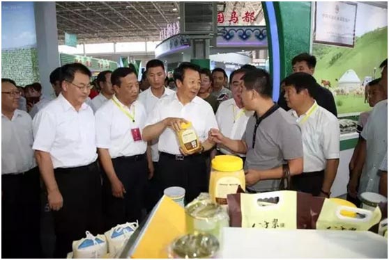 隨后,自治區(qū)黨委書記王君,自治區(qū)政協(xié)主席任亞平,自治區(qū)黨委常委、呼和浩特市委書記那順孟和,自治區(qū)副主席王玉明等領(lǐng)導(dǎo)在市委書記何永林,市委副書記、市長段志強(qiáng)的陪同下,參觀了12個(gè)盟市和部分企業(yè)的展區(qū)。在參觀過程中,王君書記強(qiáng)調(diào)我們要積極適應(yīng)和引領(lǐng)經(jīng)濟(jì)發(fā)展新常態(tài),毫不放松地抓好農(nóng)牧業(yè)生產(chǎn),打好產(chǎn)品優(yōu)勢(shì)牌,走好企業(yè)特色路,不斷培育產(chǎn)業(yè)新的增長點(diǎn)。并要抓住互聯(lián)網(wǎng)時(shí)代信息與各類產(chǎn)業(yè)融合發(fā)展的新機(jī)遇,充分利用好互聯(lián)網(wǎng)+的新模式,為我區(qū)綠色農(nóng)畜產(chǎn)品生產(chǎn)加工輸出插上信息化的翅膀。