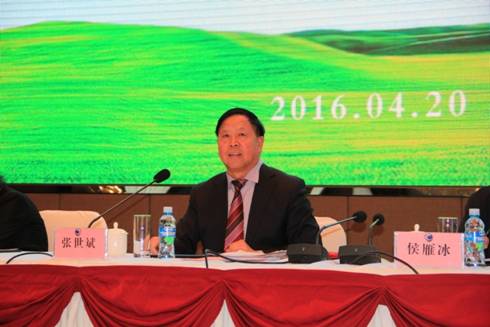 內(nèi)蒙古農(nóng)牧業(yè)產(chǎn)業(yè)化龍頭企業(yè)協(xié)會會長張世斌做2016年度工作報告