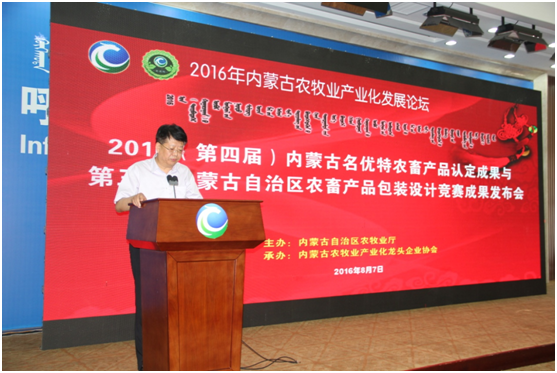 8月7日上午,第四屆內(nèi)蒙古“名優(yōu)特”農(nóng)畜產(chǎn)品認定及第三屆內(nèi)蒙古自治區(qū)包裝設(shè)計競賽成果發(fā)布會及內(nèi)蒙古農(nóng)牧業(yè)產(chǎn)業(yè)化論壇在內(nèi)蒙古國際會展中心盛大開幕。內(nèi)蒙古自治區(qū)農(nóng)牧業(yè)廳廳長郭健、副廳長云挨厚、產(chǎn)業(yè)化處處長侯雁冰、辦公室副主任黃偉,中國農(nóng)業(yè)產(chǎn)業(yè)化龍頭企業(yè)協(xié)會綜合部副主任程篤學(xué)、內(nèi)蒙古農(nóng)牧業(yè)產(chǎn)業(yè)化龍頭企業(yè)協(xié)會會長閆樹春,內(nèi)蒙古農(nóng)牧業(yè)產(chǎn)業(yè)化龍頭企業(yè)協(xié)會執(zhí)行會長兼秘書長林永亮,各盟市農(nóng)牧業(yè)局(產(chǎn)業(yè)化辦公室)負責人,精品館負責人,內(nèi)蒙古農(nóng)牧業(yè)產(chǎn)業(yè)化龍頭企業(yè)負責人,各參展企業(yè)負責人及包裝名優(yōu)特獲獎企業(yè)負責人,協(xié)會辦事處負責人、會員單位等200余人出席會議,自治區(qū)農(nóng)牧業(yè)廳產(chǎn)業(yè)化處處長侯雁冰主持會議。本次會議特別邀請到中國農(nóng)業(yè)科學(xué)院農(nóng)產(chǎn)品加工研究所所長、黨委副書記戴小楓做主旨演講。