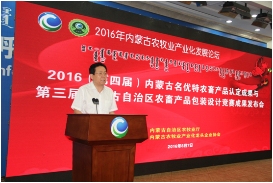 農(nóng)牧業(yè)廳副廳長云挨厚在成果發(fā)布會致辭中對農(nóng)牧業(yè)產(chǎn)業(yè)化論壇的舉辦表示充分肯定,也對新一屆獲得“名優(yōu)特”產(chǎn)品認證和包裝設(shè)計大賽獲獎企業(yè)表示熱烈祝賀,云廳長強調(diào)這些獲獎企業(yè)與產(chǎn)品是同類中的佼佼者,潛力發(fā)展巨大,農(nóng)牧業(yè)廳也將加大推進力度,整合優(yōu)質(zhì)農(nóng)畜產(chǎn)品。與此同時,云廳長也提出了三點希望:一是要注重食品安全責任意識。企業(yè)在發(fā)展過程中要將食品安全作為頭等大事,尤其是獲得協(xié)會名優(yōu)特產(chǎn)品認定與農(nóng)畜產(chǎn)品包裝設(shè)計競賽的企業(yè),更要發(fā)揮好帶頭示范作用。二是要打造品牌,補齊我區(qū)農(nóng)畜產(chǎn)品發(fā)展短板。企業(yè)要具有品牌發(fā)展意識,并通過培育發(fā)展,科技支持來研發(fā)引領(lǐng)產(chǎn)品,用行動踐行品牌意識。三是要加快推進自治區(qū)農(nóng)畜產(chǎn)品輸出工程步伐。企業(yè)要充分利用北京、上海、廣州等內(nèi)蒙古精品館與大型網(wǎng)絡(luò)電商,通過線上線下發(fā)展模式,拓寬宣傳銷售渠道。協(xié)會要充分發(fā)揮自身優(yōu)勢,抓好內(nèi)蒙古精品館的監(jiān)督與運營工作,共同助力我區(qū)農(nóng)畜產(chǎn)品走出內(nèi)蒙古,走向全國,乃至全世界。