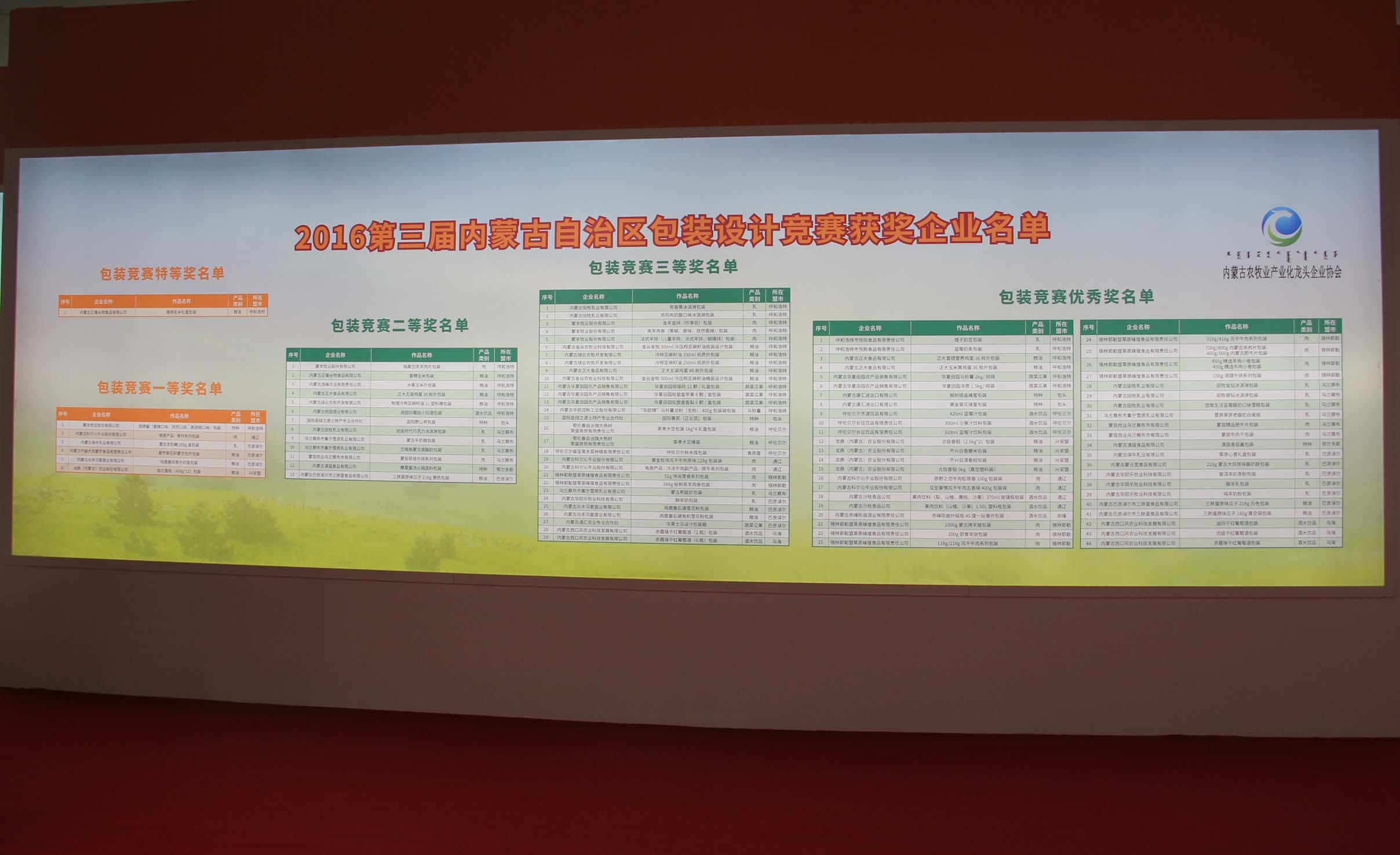 內(nèi)蒙古農(nóng)牧業(yè)產(chǎn)業(yè)化龍頭企業(yè)協(xié)會承辦的包裝設(shè)計成果展示廳