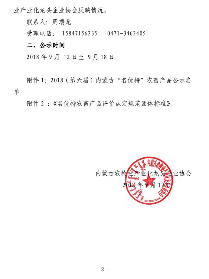 第六屆內(nèi)蒙古“名優(yōu)特”農(nóng)畜產(chǎn)品的公示