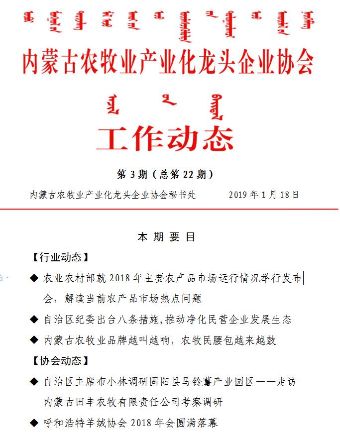 標題:內蒙古農牧業(yè)產業(yè)化龍頭企業(yè)協(xié)會工作動態(tài)第3期(總第22期)