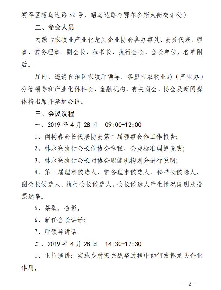 關(guān)于召開內(nèi)蒙古農(nóng)牧業(yè)產(chǎn)業(yè)化龍頭企業(yè)協(xié)會第三屆第一次理事會暨會員代表大會的通知