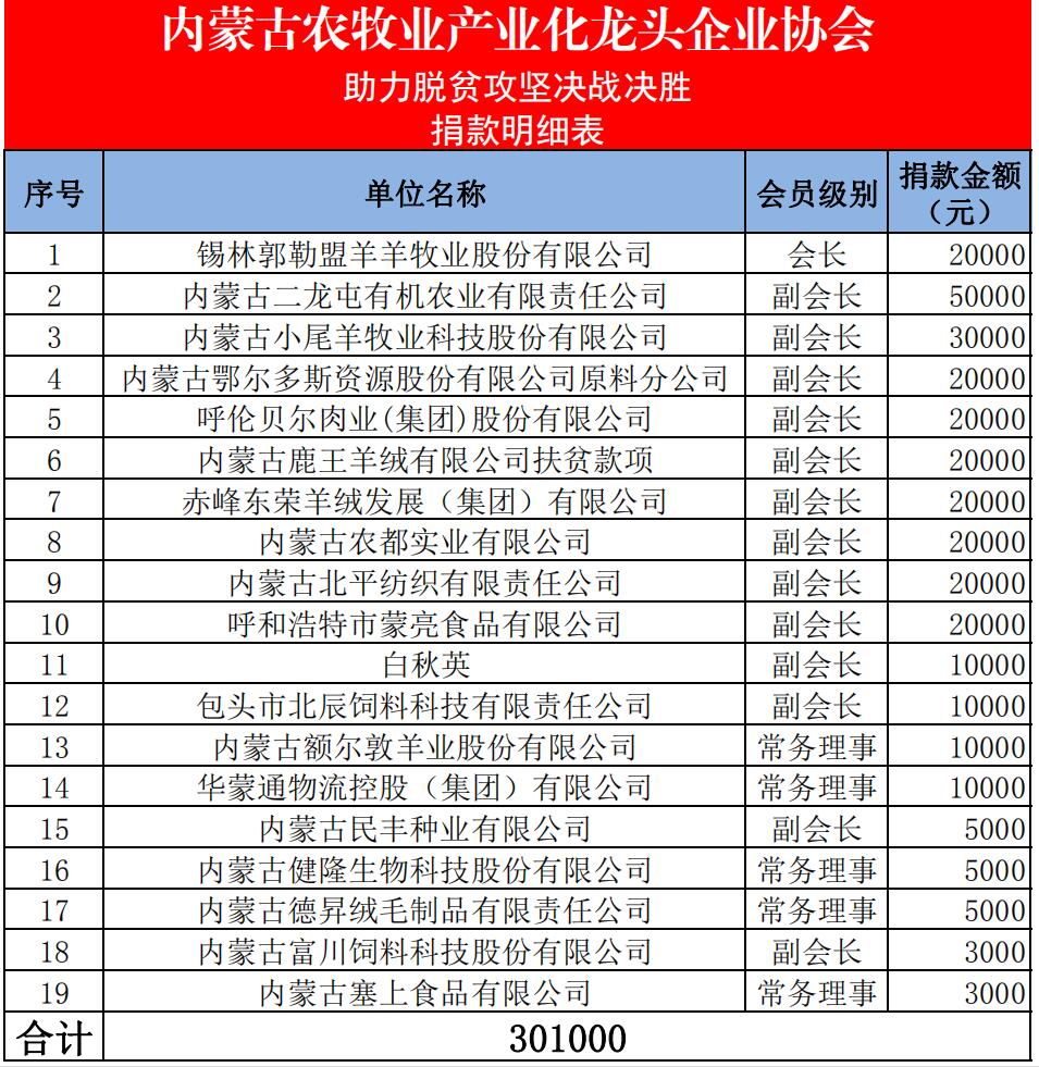 2020年,是全面建成小康社會(huì)目標(biāo)實(shí)現(xiàn)之年,是全面打贏脫貧攻堅(jiān)戰(zhàn)收官之年,更是產(chǎn)業(yè)扶貧工作至關(guān)重要的一年,抓好此項(xiàng)工作責(zé)任重大、意義重大。受新冠肺炎疫情的影響,產(chǎn)業(yè)扶貧工作也必將會(huì)遇到新的挑戰(zhàn),時(shí)間緊、任務(wù)重,內(nèi)蒙古農(nóng)牧業(yè)產(chǎn)業(yè)化龍頭企業(yè)協(xié)會(huì)在內(nèi)蒙古自治區(qū)農(nóng)牧廳的指導(dǎo)下,克服困難、精心策劃、認(rèn)真研究、取長(zhǎng)補(bǔ)短,持續(xù)抓好今年的幫扶工作,確保成效。