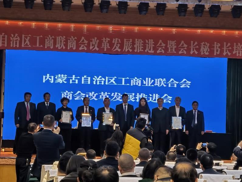 會上,自治區(qū)工商聯(lián)秘書長趙慶祿宣讀了抗擊新冠肺炎疫情先進商協(xié)會組織名單,內蒙古農牧業(yè)產業(yè)化龍頭企業(yè)協(xié)會執(zhí)行秘書長呼群上臺領取抗擊新冠肺炎疫情先進商協(xié)會貢獻獎牌。