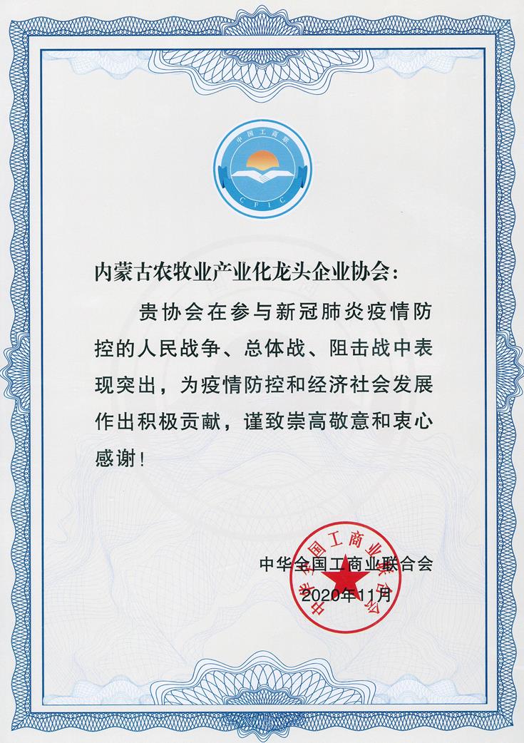 在抗擊新冠肺炎疫情過程中,內蒙古農牧業(yè)產業(yè)化龍頭企業(yè)協(xié)會把疫情防控作為重大政治任務,堅決貫徹落實習近平總書記重要指示精神和黨中央、自治區(qū)決策部署,立足自身優(yōu)勢,主動擔當作為,統(tǒng)籌做好疫情防控和復工復產,為統(tǒng)籌推進疫情防控和經濟社會發(fā)展取得階段性勝利做出了重要貢獻。