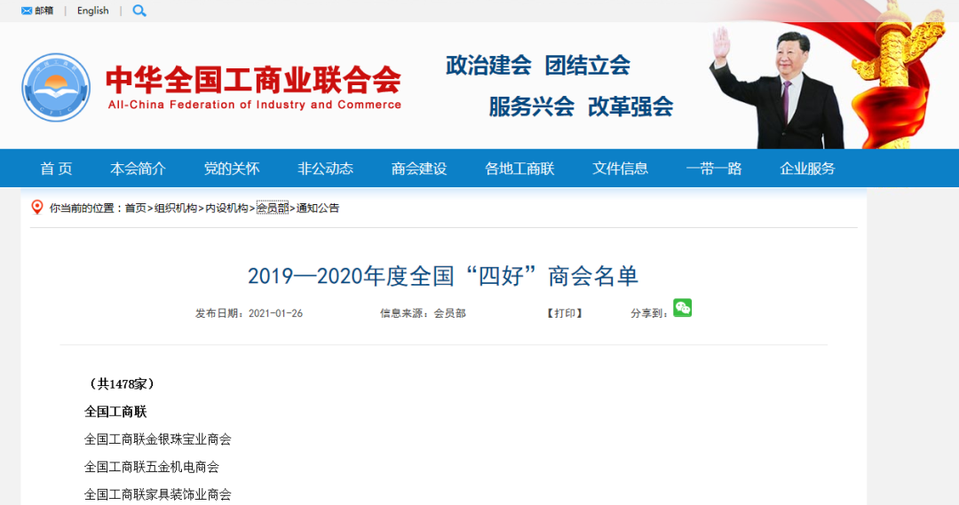 榮獲全國“四好”商會(huì)榮譽(yù)稱號(hào)