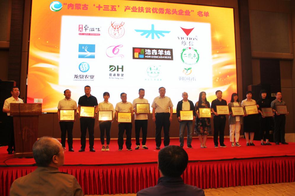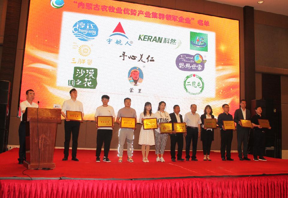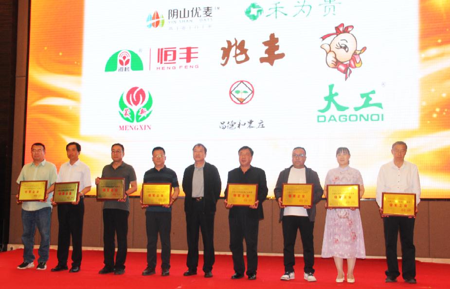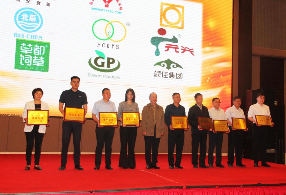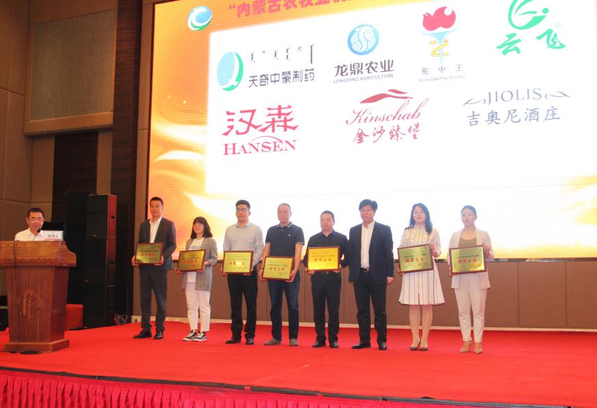 內(nèi)蒙古自治區(qū)農(nóng)牧廳總農(nóng)藝師劉永明為獲獎企業(yè)頒獎