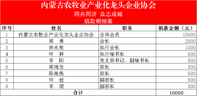三、“一方有難,八方支援”,截止目前,在協會會長周勇的帶領下,協會秘書處共募集抗疫捐款1.6萬元,結合地方所需,已于2月23日以現款形式捐贈給呼和浩特市紅十字會,用于呼和浩特市疫情防控工作。