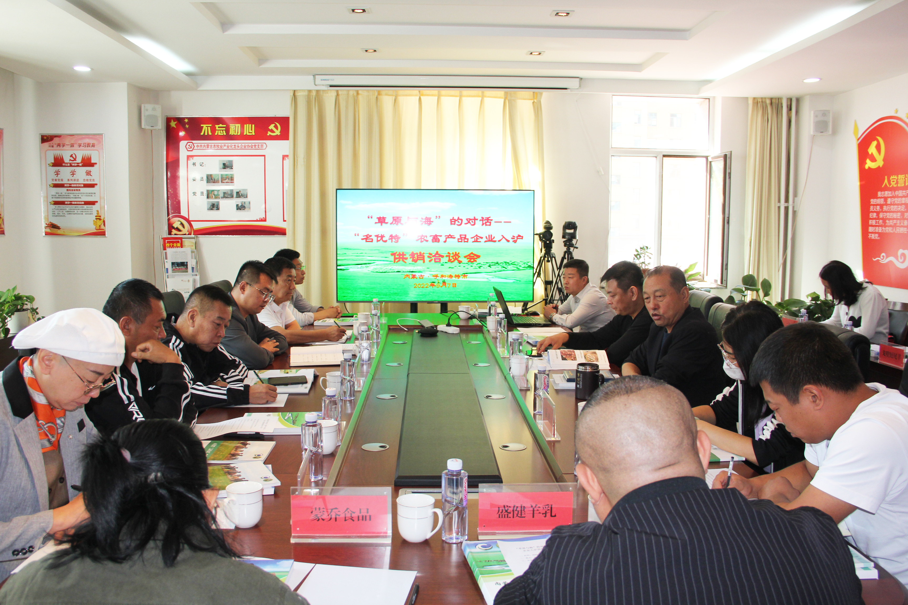 為貫徹落實(shí)《滬蒙兩地政府深化戰(zhàn)略合作框架協(xié)議》指示精神,依照上海市農(nóng)業(yè)農(nóng)村委員會(huì)與內(nèi)蒙古自治區(qū)農(nóng)牧廳簽署的《農(nóng)牧業(yè)合作協(xié)議》重點(diǎn)合作內(nèi)容,內(nèi)蒙古農(nóng)牧業(yè)產(chǎn)業(yè)化龍頭企業(yè)協(xié)會(huì)于2022年97上午,在呼和浩特市再次組織召“名優(yōu)特”農(nóng)畜產(chǎn)品企業(yè)入滬供銷洽談會(huì),協(xié)會(huì)執(zhí)行會(huì)長(zhǎng)林永亮,會(huì)員部部長(zhǎng)周瑞龍,辦公室主任陳海燕,協(xié)會(huì)上海辦事處主任張國(guó)賢,副主任王政,顧問邢黎明教授內(nèi)蒙古旅游行業(yè)協(xié)會(huì),策賦咨詢,協(xié)會(huì)會(huì)員單位:羊羊牧業(yè)、蒙亮、盛健生物、華歐淀粉、陰山優(yōu)麥、紅太陽、蒙喬食品、蘭格格乳業(yè)、高原杏仁露、龍鼎農(nóng)業(yè)、二龍屯15家單位代表參加會(huì)議。會(huì)議由協(xié)會(huì)上海辦事處副主任王政主持。