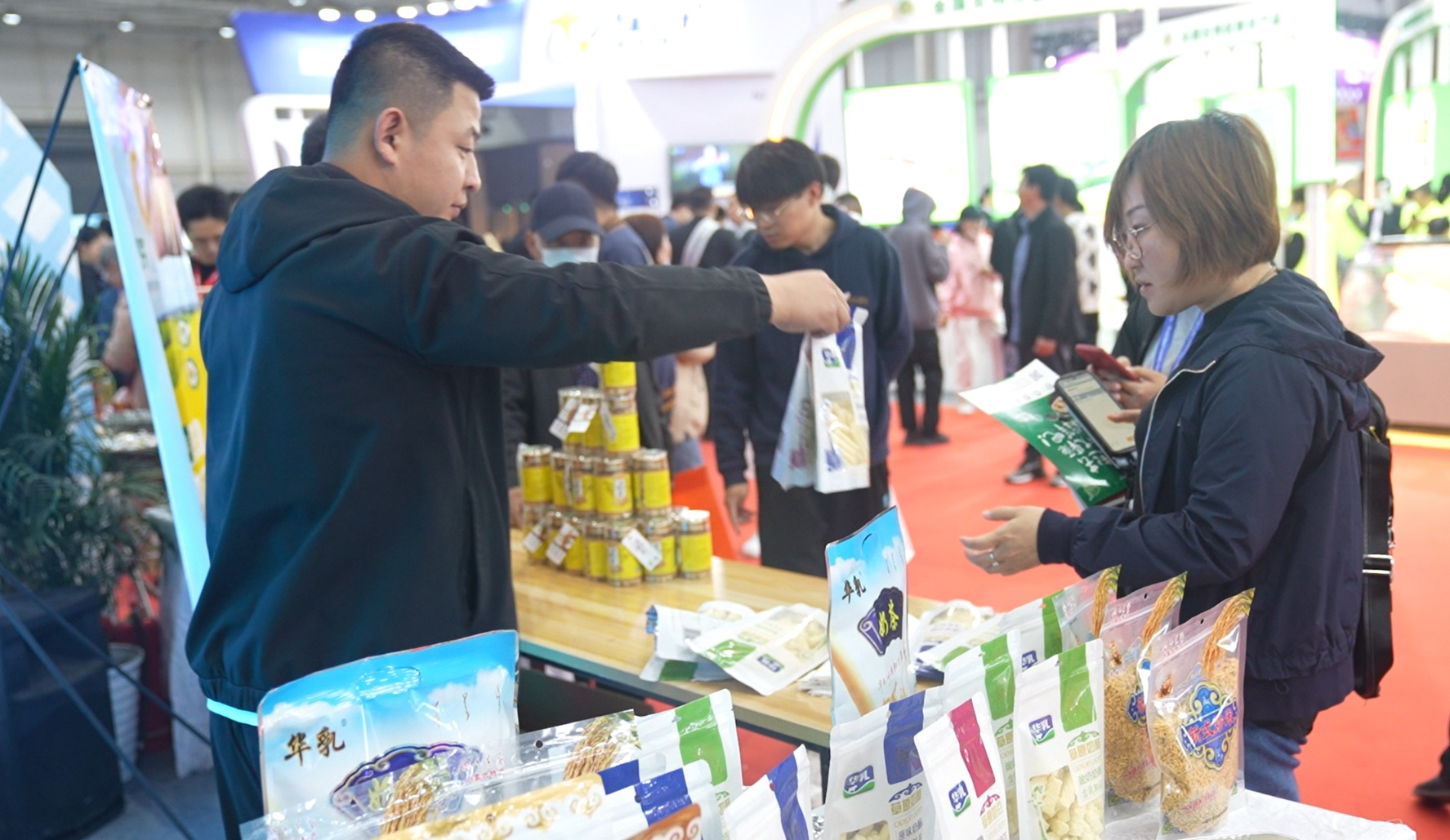 來自內(nèi)蒙古的200多家企業(yè)在展覽會上進行了招商推介。活動現(xiàn)場,既有鮮美無比的牛羊肉,也有香氣四溢的乳制品;既有軟糯甜香的米面糧油,也有清香可口的瓜果蔬菜,內(nèi)蒙古各盟市的名優(yōu)特新產(chǎn)品擺滿了貨架,吸引全國各地的參展商參觀品鑒、咨詢洽談。