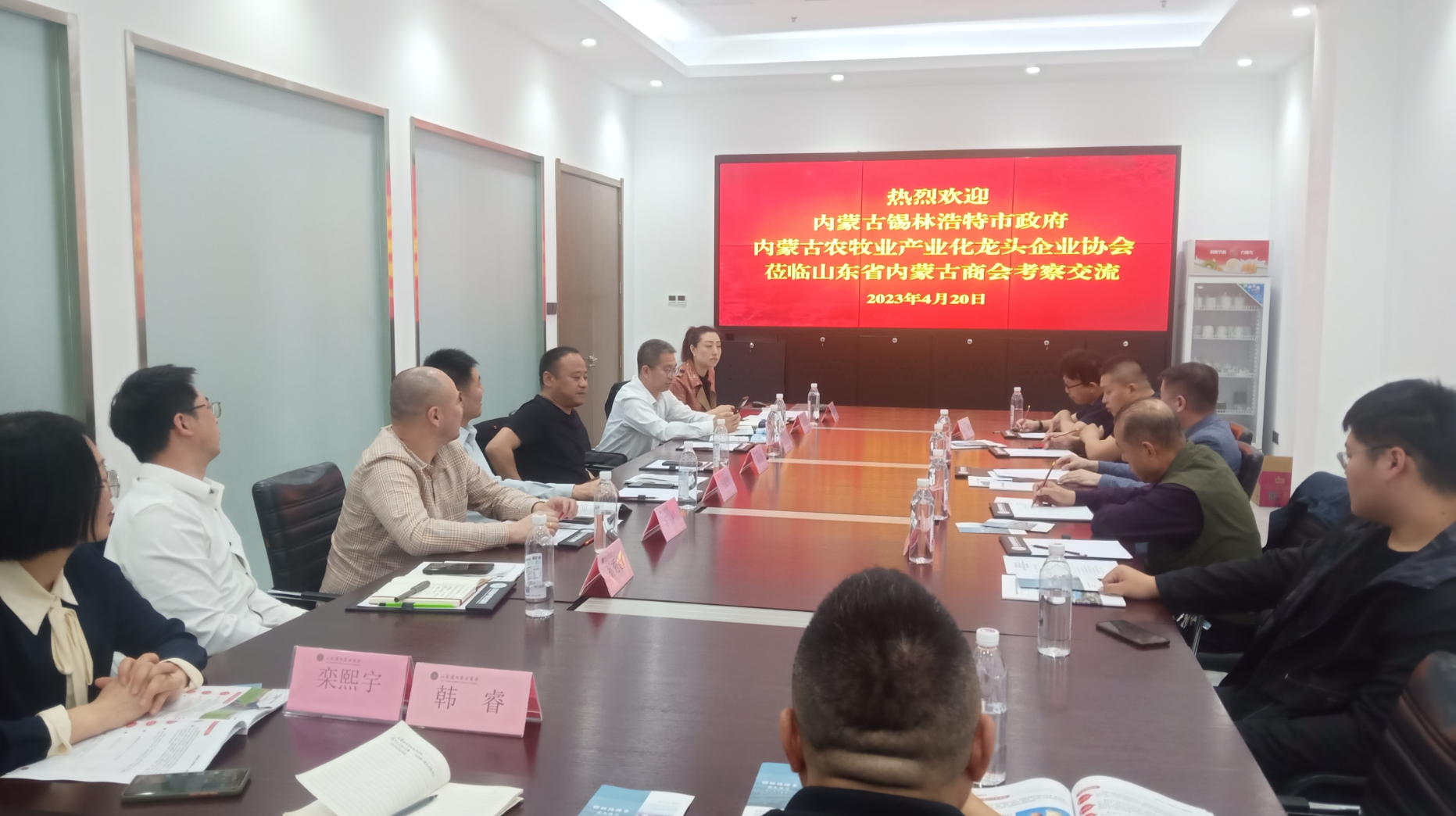 4月20日下午,內(nèi)蒙古農(nóng)牧業(yè)產(chǎn)業(yè)化龍頭企業(yè)協(xié)會執(zhí)行會長林永亮、副秘書長周瑞龍,內(nèi)蒙古錫林浩特市政府副市長陶力古爾,錫林浩特市農(nóng)牧和科技局干部代勤、吳圖布信一行到山東內(nèi)蒙古商會座談交流。山東省內(nèi)蒙古商會會長韓振濤,副會長馬銀剛,支部書記高志宏,副會長兼秘書長侯羨暉,副秘書長、青島市呼倫貝爾商會副會長兼秘書長郭峰,會員孫秀超,招商聯(lián)絡(luò)處主任賈曼及秘書處工作人員參加會議。