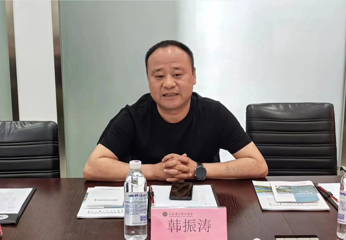 韓振濤會長在座談上進行了發(fā)言,多年來,山東省內(nèi)蒙古商會不斷發(fā)揮自身優(yōu)勢,凝聚在魯蒙商力量,始終把助力家鄉(xiāng)政府招商引資作為商會的重點工作之一。此次商會共同建立的內(nèi)蒙古(山東)會客廳項目,既是在山東展示內(nèi)蒙古的舞臺,又是內(nèi)蒙古在山東配置資源的平臺,希望會客廳能充分發(fā)揮作用,讓更多人通過會客廳走進內(nèi)蒙古、認(rèn)識內(nèi)蒙古,鏈接更多有效資源、謀求更大合作空間,與家鄉(xiāng)政府一道攜手開拓,為家鄉(xiāng)經(jīng)濟發(fā)展建設(shè)添磚加瓦。