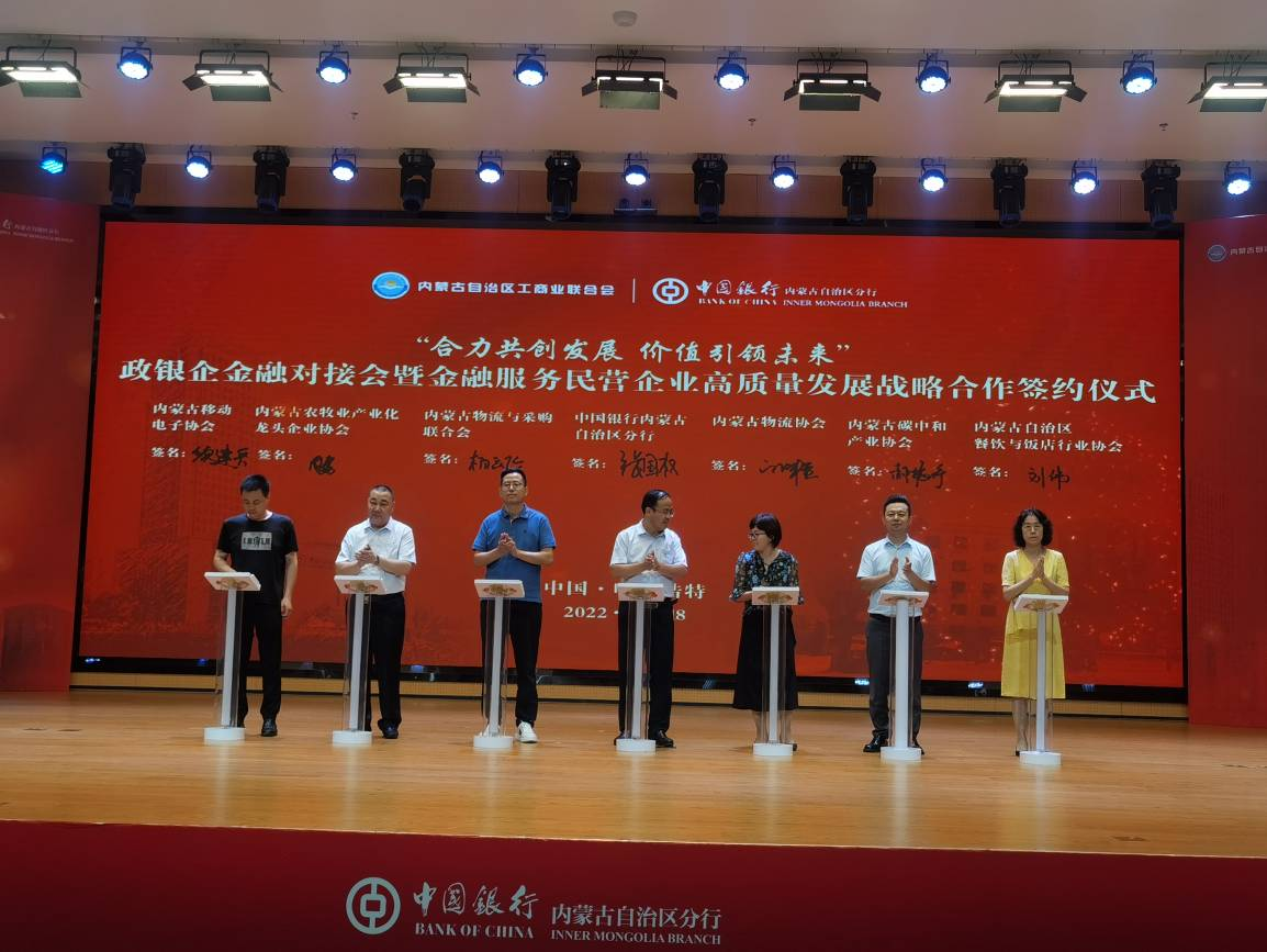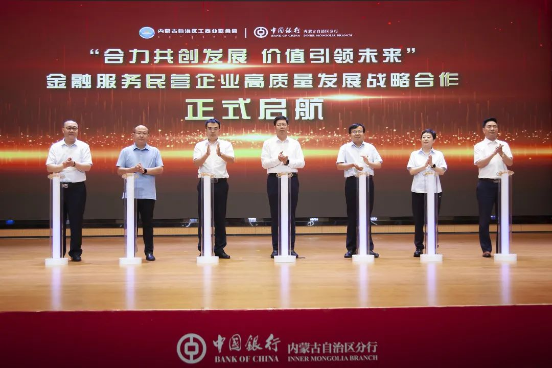 在與會(huì)人員的共同見(jiàn)證下,中國(guó)銀行內(nèi)蒙古自治區(qū)分行與自治區(qū)工商聯(lián)金融服務(wù)民營(yíng)企業(yè)高質(zhì)量發(fā)展戰(zhàn)略合作正式啟航。