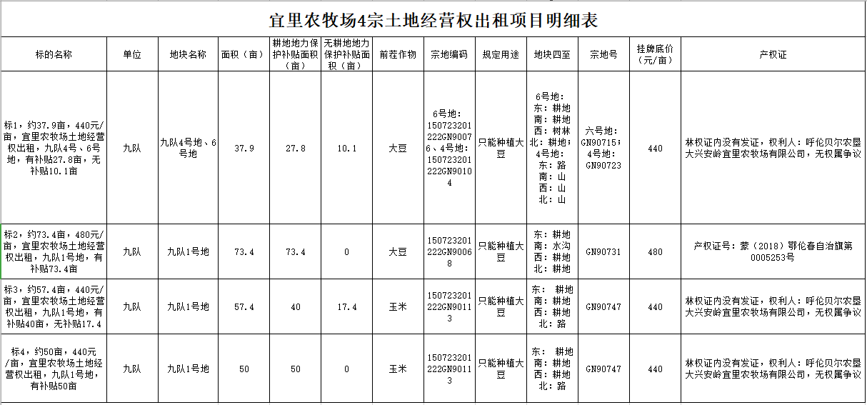 2.標(biāo)的坐落:呼倫貝爾農(nóng)墾大興安嶺宜里農(nóng)牧場(chǎng)有限公司