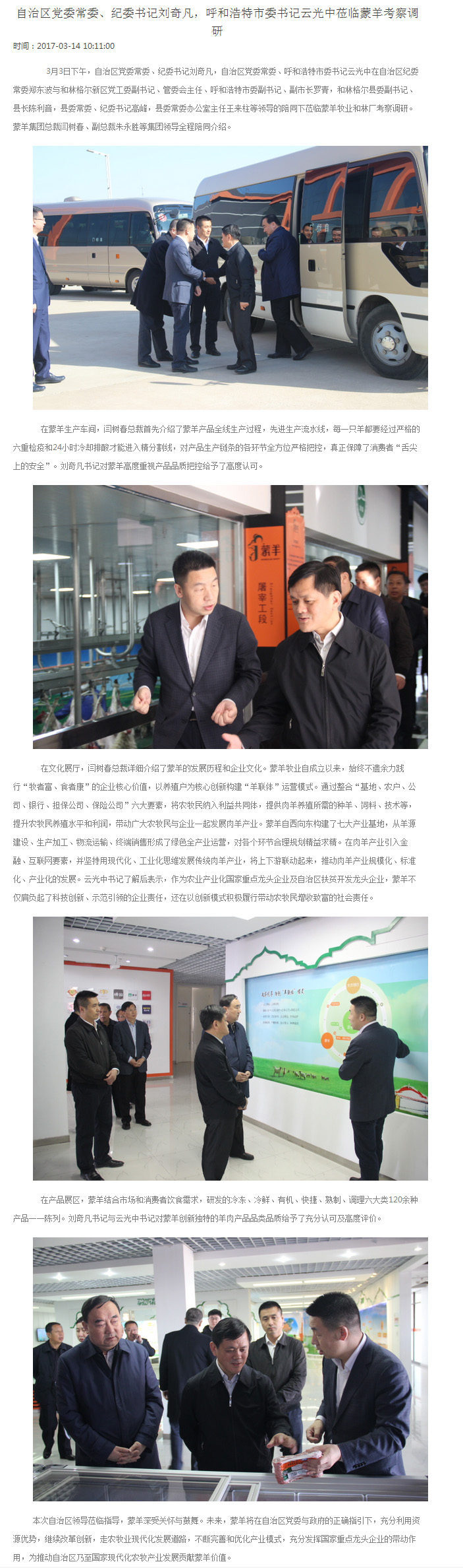 自治區(qū)黨委常委、紀(jì)委書(shū)記劉奇凡,呼和浩特市委書(shū)記云光中蒞臨蒙羊考察調(diào)研