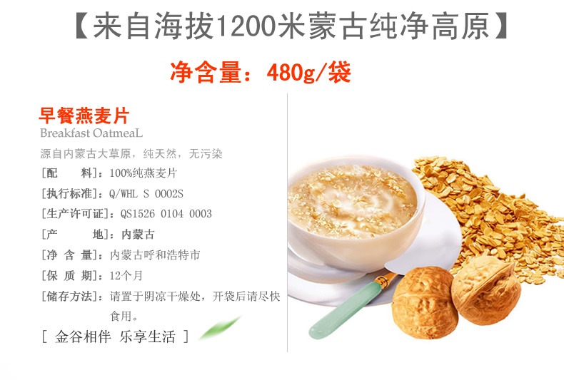 480g早餐燕麥片 金谷金牧燕麥片 廠家直銷 燕麥批發(fā)銷售