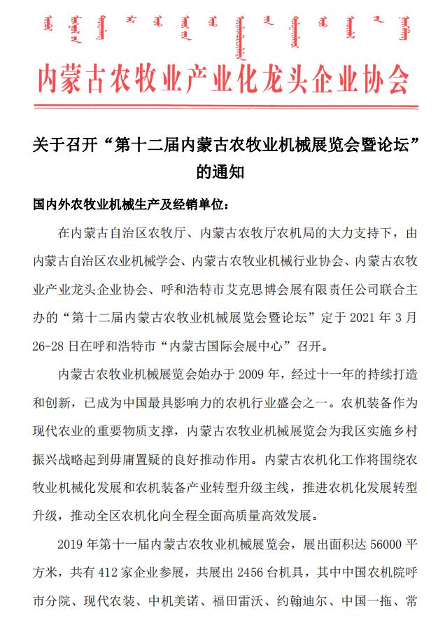 第14屆內(nèi)蒙古乳業(yè)博覽會暨高峰論壇邀請函