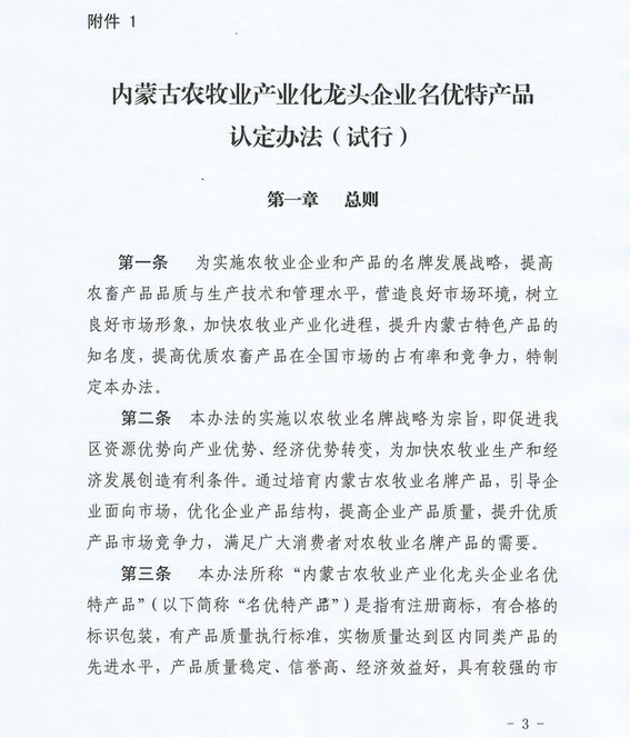 關(guān)于印發(fā)《內(nèi)蒙古農(nóng)牧業(yè)產(chǎn)業(yè)化龍頭企業(yè)名優(yōu)特產(chǎn)品認(rèn)定辦法》的通知
