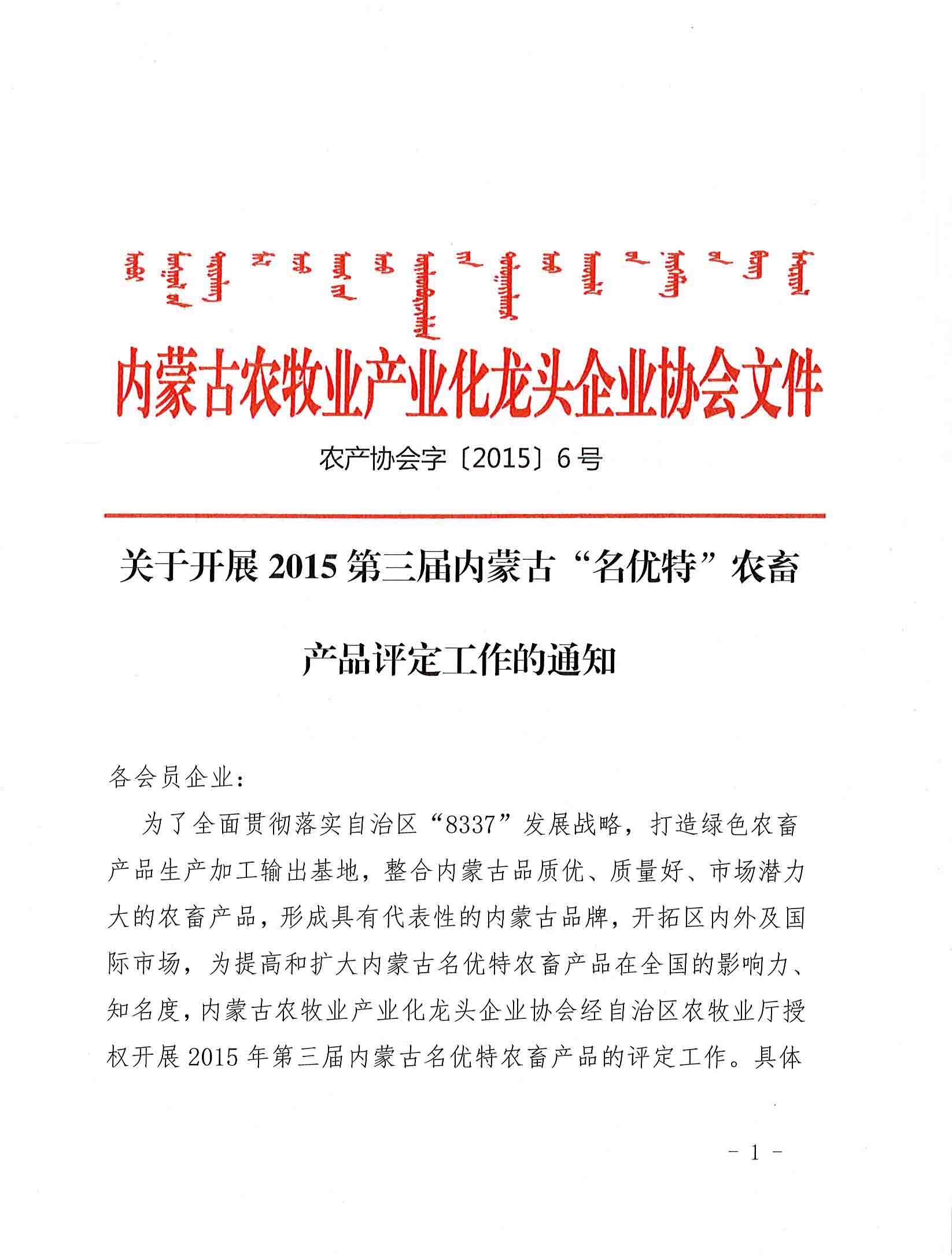 15  關(guān)于召開內(nèi)蒙古農(nóng)牧業(yè)產(chǎn)業(yè)化龍頭企...