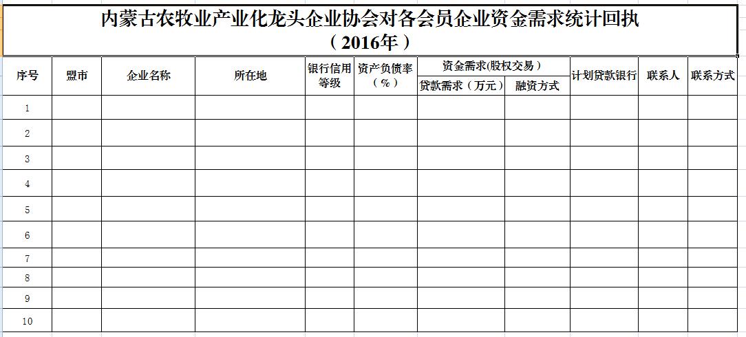 關于向各會員企業(yè)征集金融貸款需求的通知