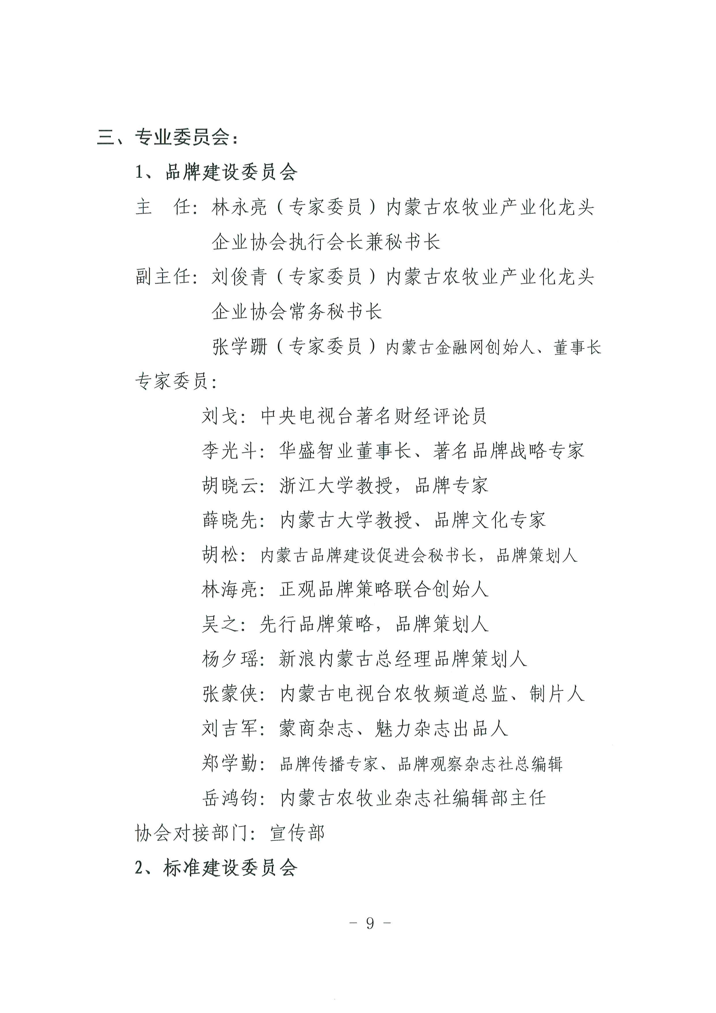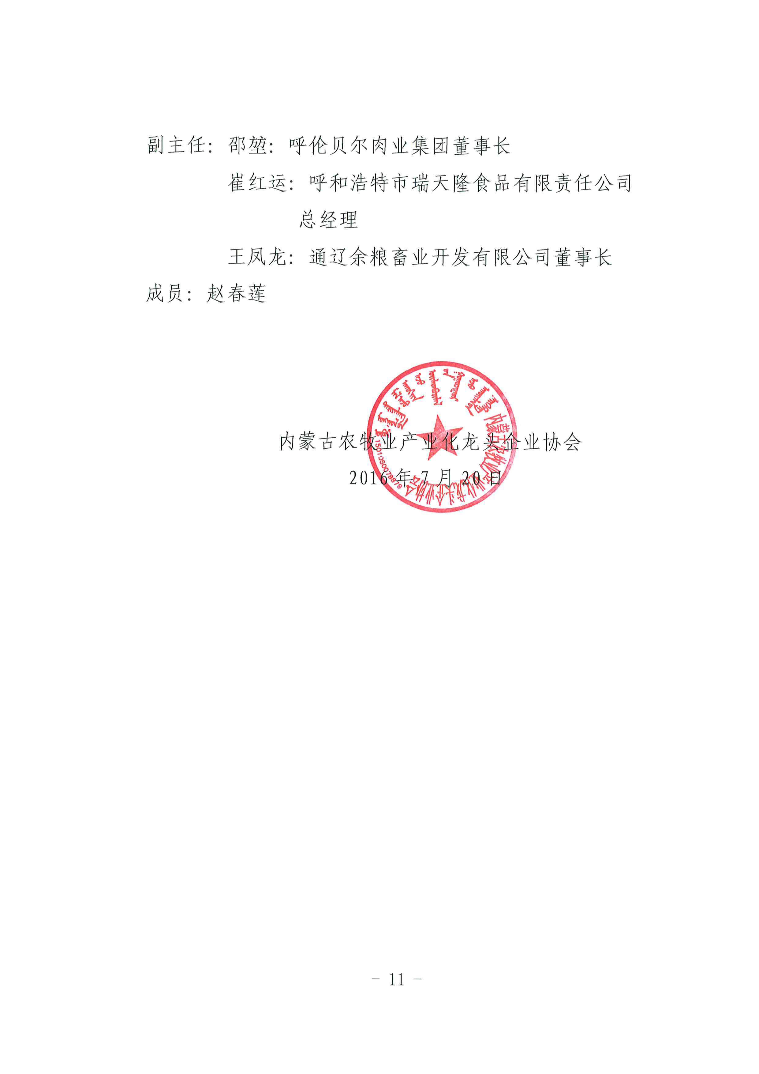 關于內蒙古農牧業(yè)產業(yè)化龍頭企業(yè)協(xié)會內設機構崗位設定和人員分工的通知