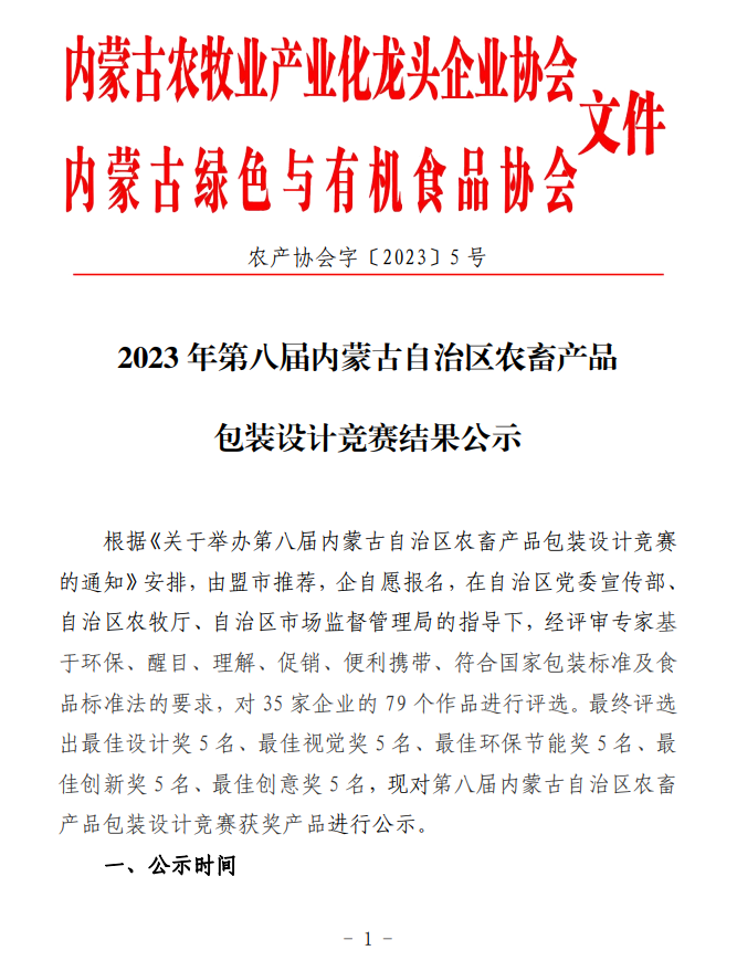 2023年第八屆內(nèi)蒙古自治區(qū)農(nóng)畜產(chǎn)品包裝設計競賽結(jié)果公示