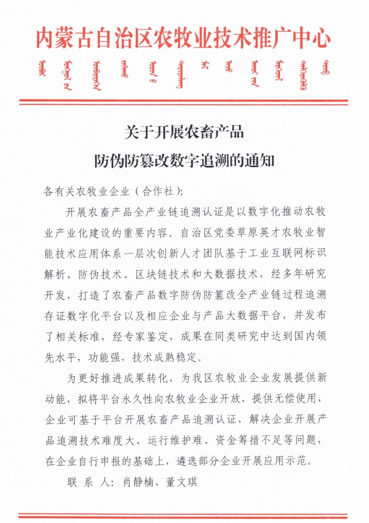 轉(zhuǎn)發(fā):關(guān)于開展農(nóng)畜產(chǎn)品防偽防篡改數(shù)字追溯的通知