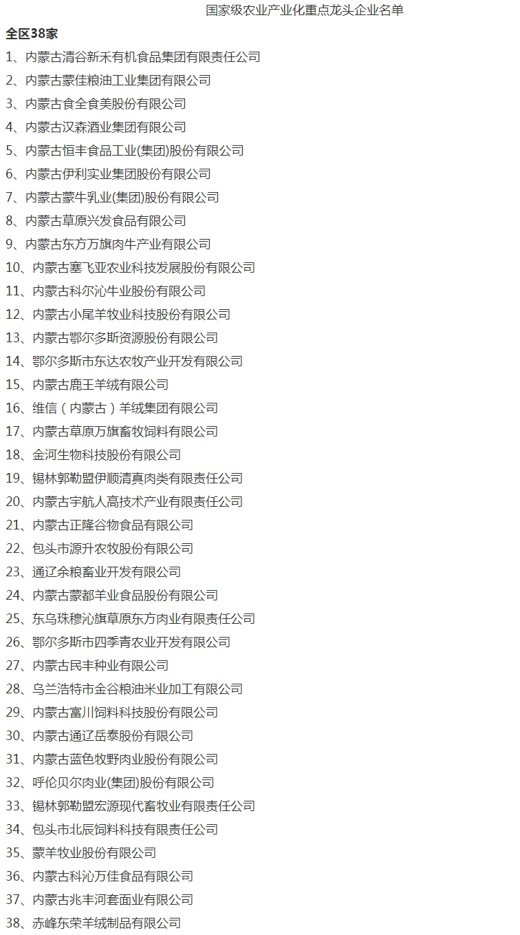 企業(yè)名稱:截止2017年末國家級農(nóng)業(yè)產(chǎn)業(yè)化重點龍頭企業(yè)名單