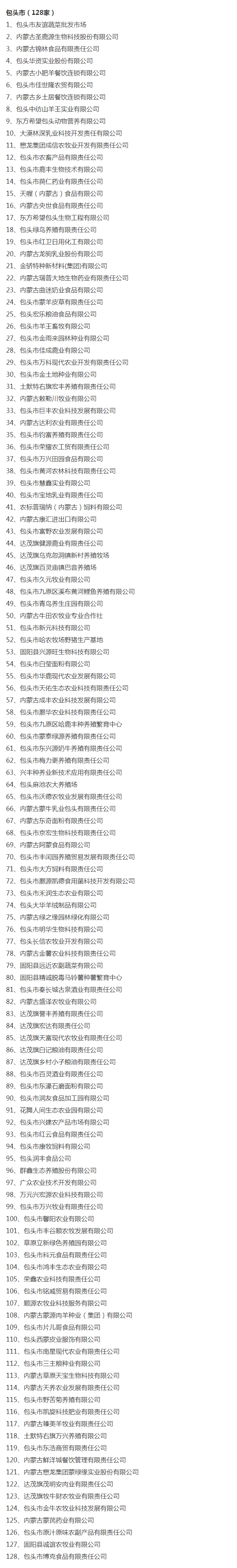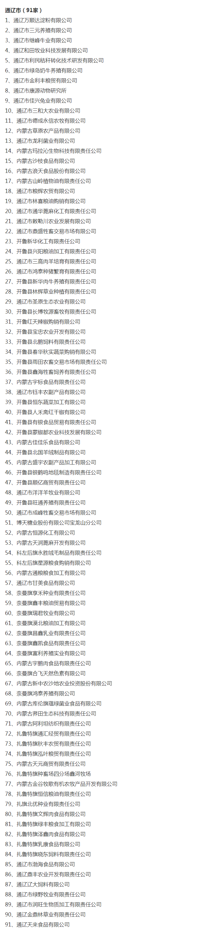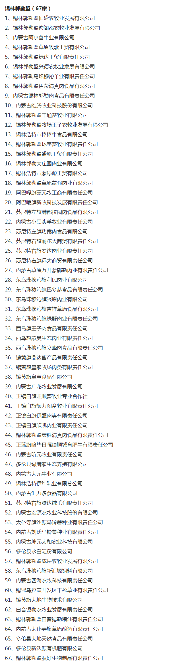 企業(yè)名稱:截止2017年末盟市級(jí)農(nóng)業(yè)產(chǎn)業(yè)化重點(diǎn)龍頭企業(yè)名單