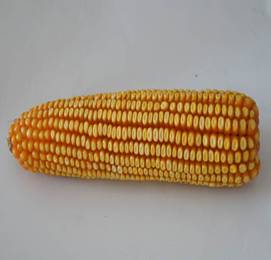 春播區(qū)從出苗至成熟126天。株型半緊湊,莖桿“之”字型程度弱,葉片上沖直立,葉色深綠,莖桿粗壯,氣生根發(fā)達(dá),高抗倒伏。株高265-270cm,穗位85cm。果穗長(zhǎng)筒型,穗長(zhǎng)24 cm,穗粗4.2 cm,左右,穗行數(shù)14-16行,紅軸,籽粒橙黃色,馬齒型。高抗黑粉病,抗絲黑穗病、大斑病、莖腐病,抗玉米螟及紅蜘蛛。在高產(chǎn)攻關(guān)試驗(yàn)中,產(chǎn)量可達(dá)1000 kg/667m2
