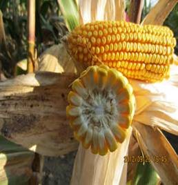 春播區(qū)從出苗至成熟127天左右。株型緊湊,株高270cm左右,穗位100cm,果穗長(zhǎng)柱型, 穗行數(shù)16-18行,紅軸,出籽率87%,品質(zhì)優(yōu)。
