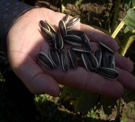屬中晚熟種,生育期105天,株高180200cm,適應(yīng)性廣,種皮薄,易抓苗;抗病性強(qiáng)。花盤直徑 18.521cm,單盤粒重151克左右,盤口緊密結(jié)實(shí);平均百粒重18.31克,籽粒飽滿,結(jié)實(shí)率高;籽粒長(zhǎng)2.0cm以上,寬0.9cm,種皮黑色帶白邊間有白條紋,顏色較為黑亮。
